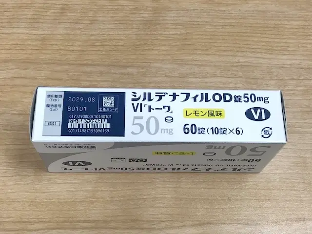ODタイプは、Orally Disintegratingの略であり、飲料無しで服用できる口腔内崩壊フィルム又は錠になります。この様なODタイプは、ヴィアトリス社の純正バイアグラODフィルム(25mgと50mg)と東和薬品のジェネリック バイアグラ50mg「トーワ」OD錠のみです。